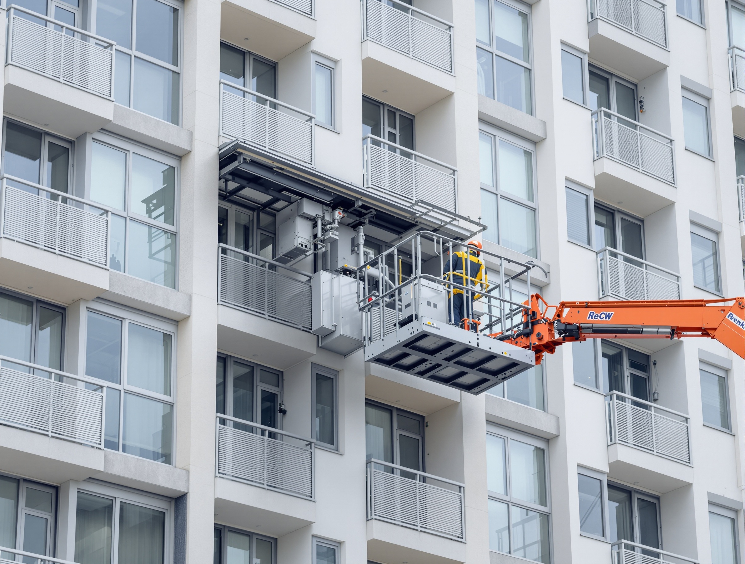 Yüksek katlı binalarda eşya ve yük taşıma için profesyonel mobil asansör kiralama hizmeti.